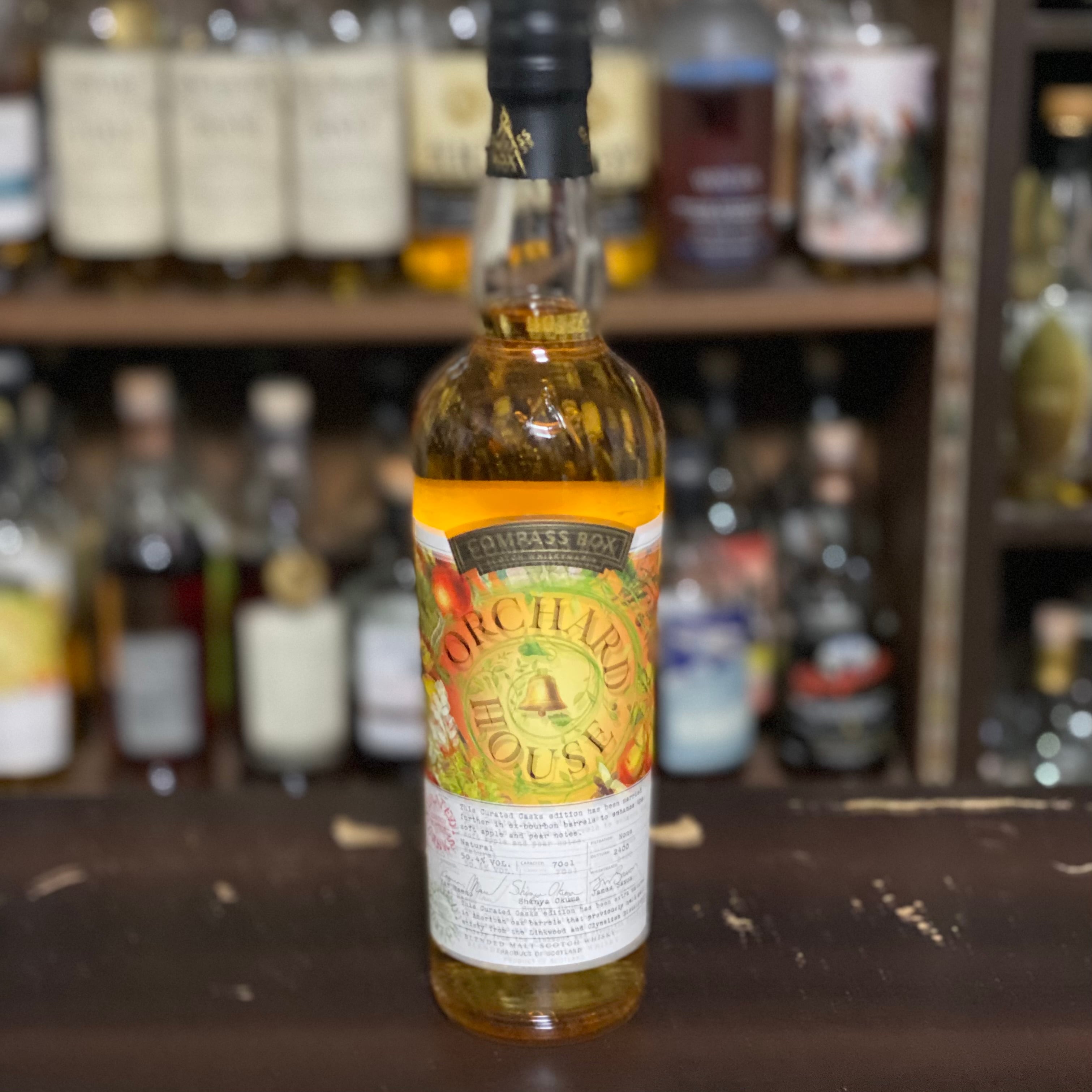 コンパスボックスのウイスキーのブレンディングを手掛け、ウイスキーメーカーとして活躍していたジェームス・サクソン氏は、残念ながら昨年惜しまれつつ引退しました。そんな彼が同社を去る直前に、我々と共にレシピを考え実現したのが、彼の最後の作品に相応しいこの「オーチャードハウス キュレイテッド(選ばれた、の意)カスク バッチ2」です。昨年発売したバッチ1では、定番品のスタイルを残しながらもよりフルーティにすべく、それぞれの蒸留所及び熟成した樽の構成はほぼそのままながら、通常より平均熟成を長くしました。